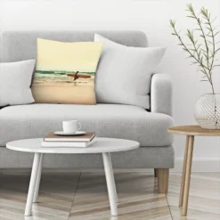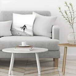 Surfer Walking On The Beach In Black And White By Tanya Shumkina Throw Pillow – Americanflat